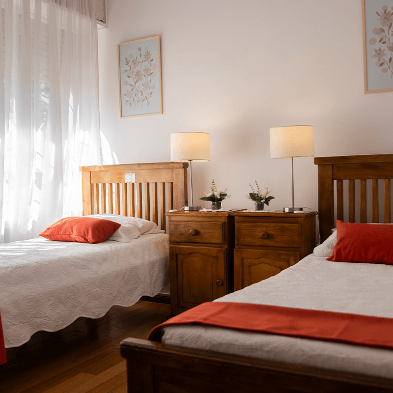 En espacios renovados, las cómodas habitaciones ofrecen la serenidad necesaria para que el adulto mayor disfrute de su estadía. Cada uno de ellos, es estimulado con talleres que en forma guiada llevan a los residentes alegría y plenitud.